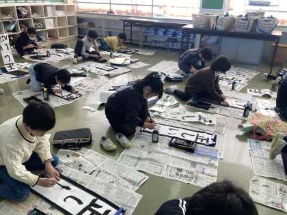 書き初め大会で書く「正しい心」の練習をしています。今まで学習してきた「とめ」「はね」など意識して書きました。