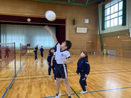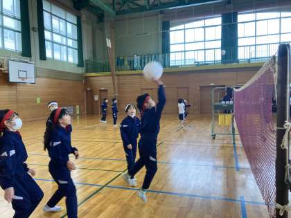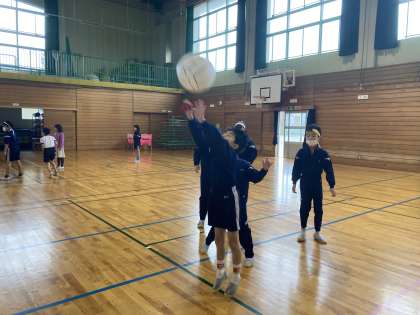 ソフトバレーボールを行いました。練習をしていくうちに、レシーブやキャッチの精度が高まっていきラリーが続くようになりました。