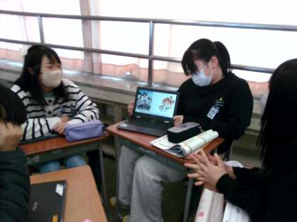 スライドに自分の思い出をまとめ紹介し合いました。聞く人は、話す人の内容に反応を返すことを意識して会話を楽しみました。