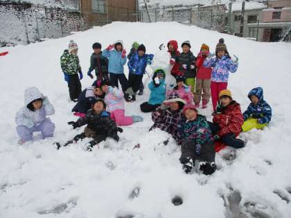 「そりをするには道が必要だね!」「雪だるまをつくろう!」「雪合戦しよう!」と声をかけ合いながら、次々と興味ある遊びから遊びへ仲良く繋がる1年1組でした。