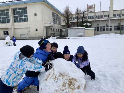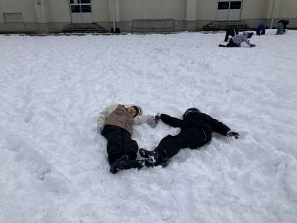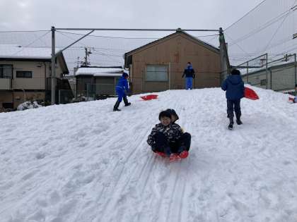 外で雪遊びを行いました。雪だるまを作ったり、そりをしたり冬にしかできないことをたくさんしました。