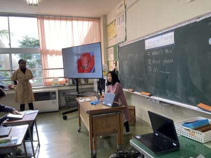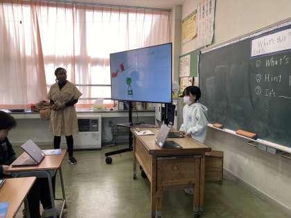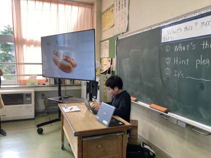 What's this? Hint please. などを使って食べ物やキャラクターを当てるクイズを行いました。各自スライドを使ってヒントを作りながら解きました。