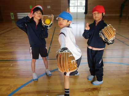 左利き用もあり、「グローブで、取れた。」と感激していました。