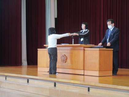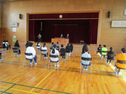 校長先生、教頭先生に来ていただき、卒業証書授与の練習と、入退場の練習をみていただきました。少し緊張した様子でしたが、練習したことを思い出しながら一生懸命取り組みました。さらによくなるポイントを教えていただき、またがんばろうという意欲が湧いてきました。