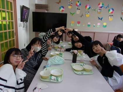 引き続きお祝い会食の様子です。18日(月)はいよいよ卒業式。みんなが元気に登校して来るのを待っています!