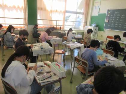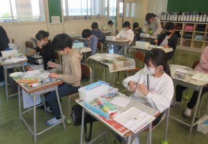 図画工作科の学習では、水彩を使って自分の心の様子を表す学習をしました。