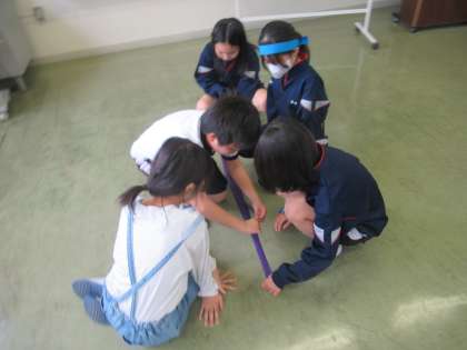 思ったよりも大きかったようです。友達と協力しながら器用に紙テープを切ったり貼ったりしていました。