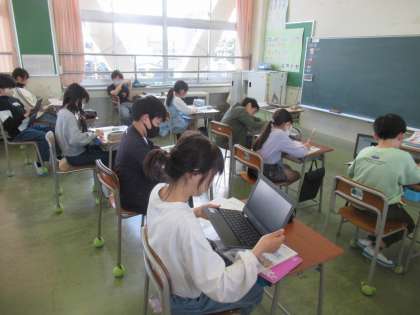 海津市の写真から考えた学習課題を、調べる活動を行っています。