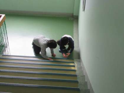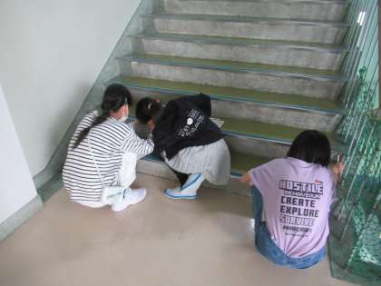 今日は、階段1段の高さを測り、1階から3階までの高さを求めました。