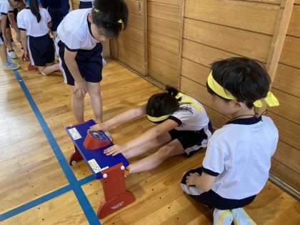 握力測定と長座体前屈の測定を行いました。今年度の体力テストの記録をしていき最後に成長を比較します。