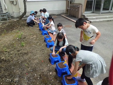 あさがおの種を植えて、数日が経ちました。子供たちは、変化が見られた様子をじっと見ています。これからどのように成長していくのか楽しみです。