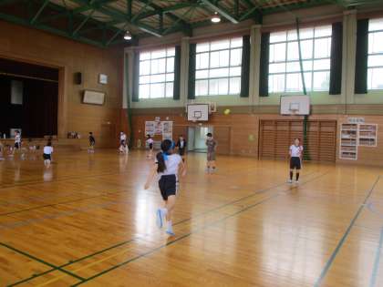 天気がよくなかったので、体育館でソフトボール投げの練習をしました。