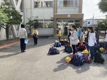 玄関前で出発式を行いました。みんな、いい顔をしています。