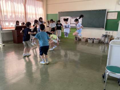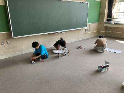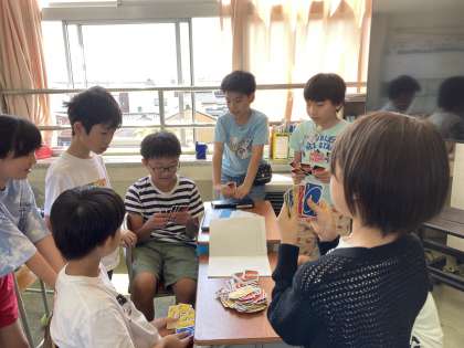 4年生の休み時間の様子です。体育館が使用できない日は、教室でカードゲームや学習室でなわとび、理科の実験などをしています。楽しく遊んでいる姿が見られました。