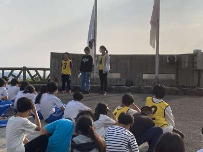 同宿の学校と互いの学校の特徴を紹介しあったり、じゃんけんゲームなどを楽しんだりしました。