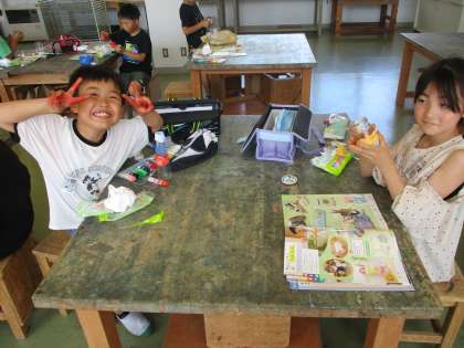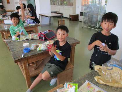 材料の準備、ありがとうございました。作ってみたい作品のイメージをもって、材料や粘土に色をつけるのを楽しんでいました。