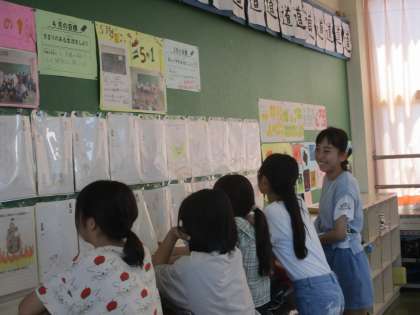 休み時間には、友達の書いた「夏は○○」を見ながら話をしていました。
