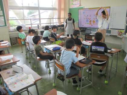 毎週火曜日は、英語専科の先生とALT(外国語指導助手)と一緒に楽しく英語を学習しています。