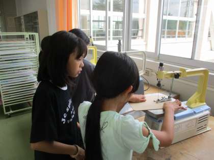 けがをしないように気を付けて取り組んでいました。スーッと切れるのが楽しかったようです。