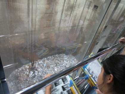 約6トンのゴミをクレーンで持ち上げる様子やゴミ収集車がゴミを捨てる様子を間近で見ました。ゴミの多さに驚く様子が見られました。