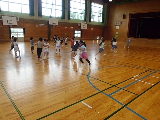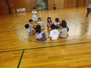 「だるまさんがころんだ」「はんかちおとし」「けいどろ」などの遊びをしました。遊びを始める前に、なかよく遊ぶためには、ルールを守ることが大切ということをみんなで話し合っていました。
