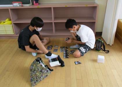 カード・ボードゲームクラブの様子です。和気あいあいと異学年同士でゲームを楽しんでいました。