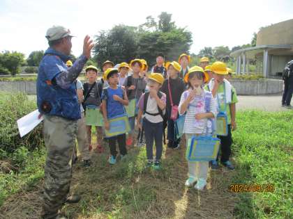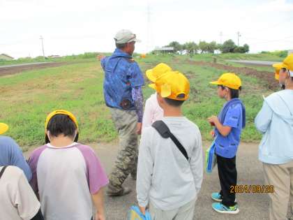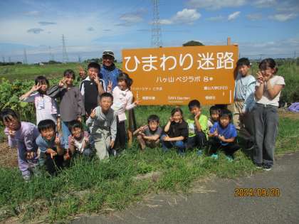 社会科の学習で学んだ「農家のしごと」の実際を見学へ、八ヶ山ベジラボファームに行ってきました。農家の方の話を真剣に聞いていました。畑でたくさんのことを感じた3年生です。
