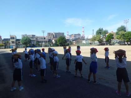 朝晩の風が涼しく感じられる季節になってきました。今日は久しぶりのタイム計測です。青空には白い雲が浮かんでいて、子供たちは、「くじらぐもだ」「いっしょに体操をしているよ」と盛り上がっていました。号令の声が、グラウンドに気持ちよく響いていました。