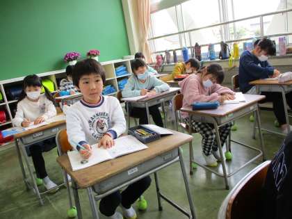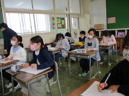 明日の連絡を連絡帳に記入している様子です。丁寧に文字を書こうと心がけています。