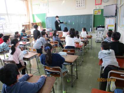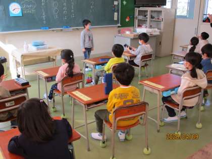 1年生は、自己紹介をしています。「名前を覚えた人?」の問いかけに、元気よく手を挙げていました。