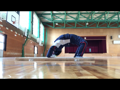 先生は柳町小学校にくるまでは、ブリッジも、あるくブリッジもできませんでした。しかし、まい日ふとんの上でチャレンジしているとできるようになりました。だから、みなさんもふとんの上でチャレンジをつづければできるはず!? がんばれ!