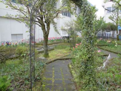 この数日でチューリップもぐんぐん伸びてきれいな花を咲かせました。早くまた中庭で遊べるとよいですね。