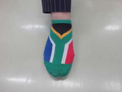 次の問題は、先生のなかに珍しいくつ下をはいている先生がいたので協力してもらって出題します。