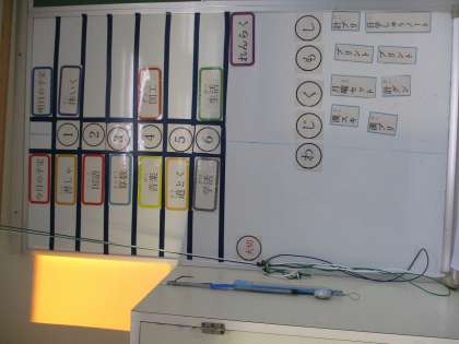 さて、2年きょうしつがパワーアップしました!うしろのけいじぶつをはるところとには、九九の表をはりました。ホワイトボードには、その日とあしたのよていがわかるようにしました。