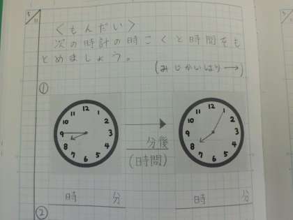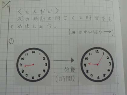 今回配付した算数プリント2の「時こくと時間をもとめる」もんだいの1で、時計の時こくにあやまりがありました。