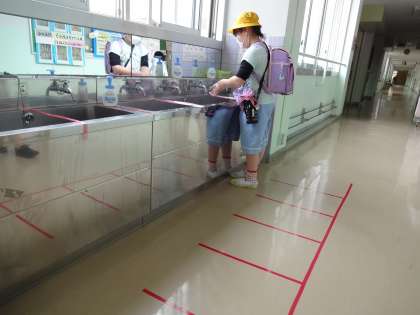 また、教室へ入る前には、ランドセルを担いだまま、手洗いを済ませました。