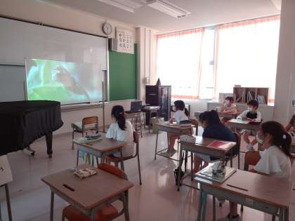 モンシロチョウの幼虫あおむしが成長し、成虫になるまでの様子を、動画を見て学習しました。