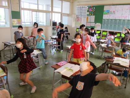 2年生は、国語の学習で、「風に揺れる竹」を体を使って表現しています。
