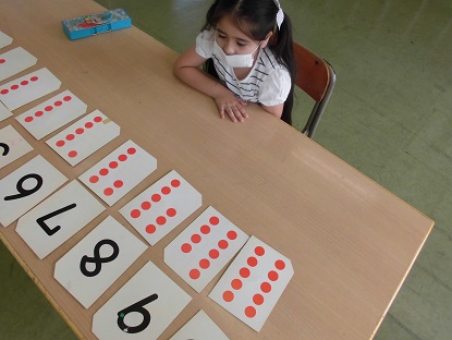 数の学習をがんばっています。0〜10までの数字を上手に読んだり、身の回りのものの数を数えたりすることができるようになりました。