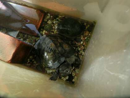 甲羅がピカピカになって、心なしか嬉しそうに見えるかめさんでした。