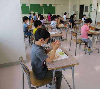 今日の1時間目は音楽の時間でした。歌わずに手や足を使ってリズムをきざみながら、学習しました。休み時間もリズムをきざんで楽しそうでしたね。