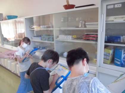今日、5年生で初めての家庭科の授業を行いました。家庭科って何の勉強をする教科なのかを調べるために、家庭科室を探検しました。