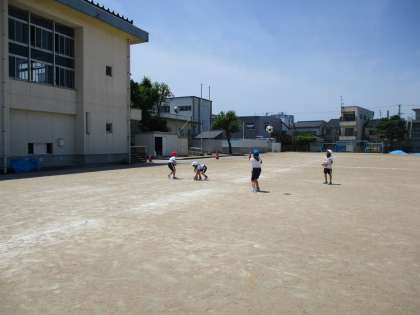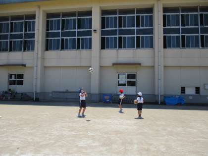 1枚目と2枚目の写真は、3限体育科授業の様子です。ボールを上に投げて回ってからとったり、手を叩いてからとったりしました。