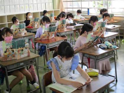 3年生は、道徳科の学習をします。みんなで教材文を音読しています。