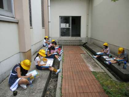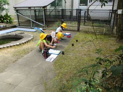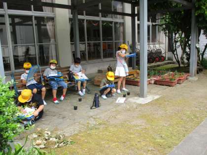 今日の生活科の時間は中庭の野菜の観察をしました。ミニトマトとパプリカの芽も出たので、観察できる野菜は増えました。
