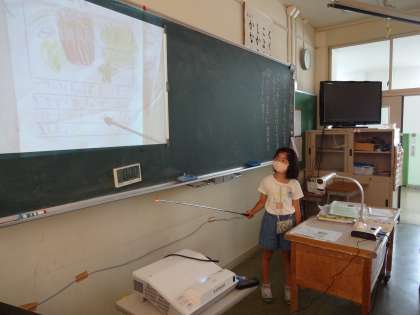 生活科でかいた2枚の観察カードを見比べ、よさを見付けました。何人かが発表しました。