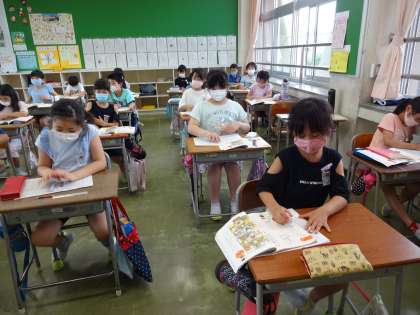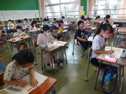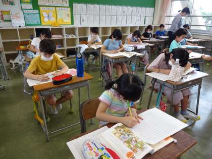 「漢字の広場」の学習では、習った漢字で文作りをしました。それに合った絵も描き、意欲的に取り組みました。