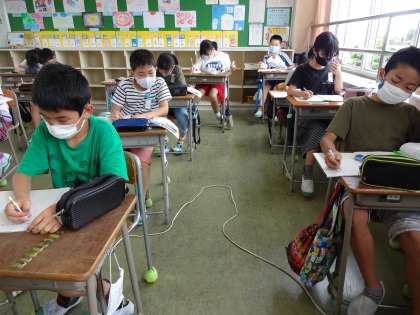 豊かな水を生活に生かしている岐阜県海津市。輪中での稲作について学んでいます。