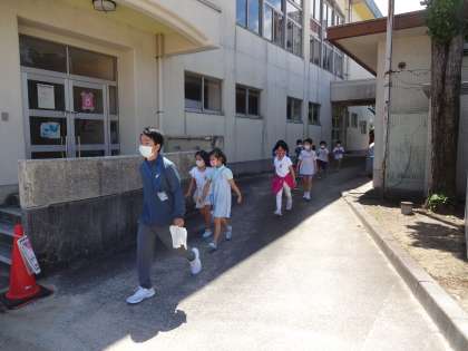 全校児童で避難するのは、今年度初めてでしたが、スムーズにグラウンドに整列することができました。