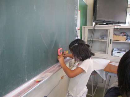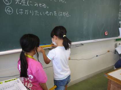 30cmものさしを使って教室にある物を測りました。測るときのポイントに気を付けながら測りました。